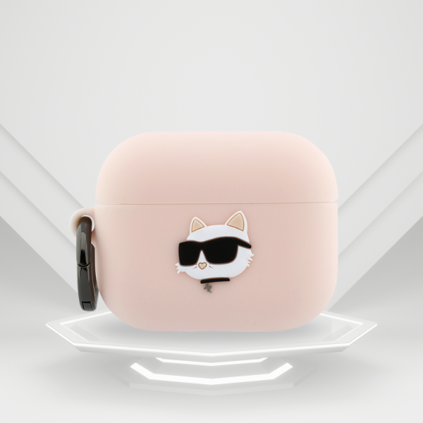 Karl Lagerfeld szilikon Choupette Fej 3D Apple AirPods Pro 3 rózsaszín
